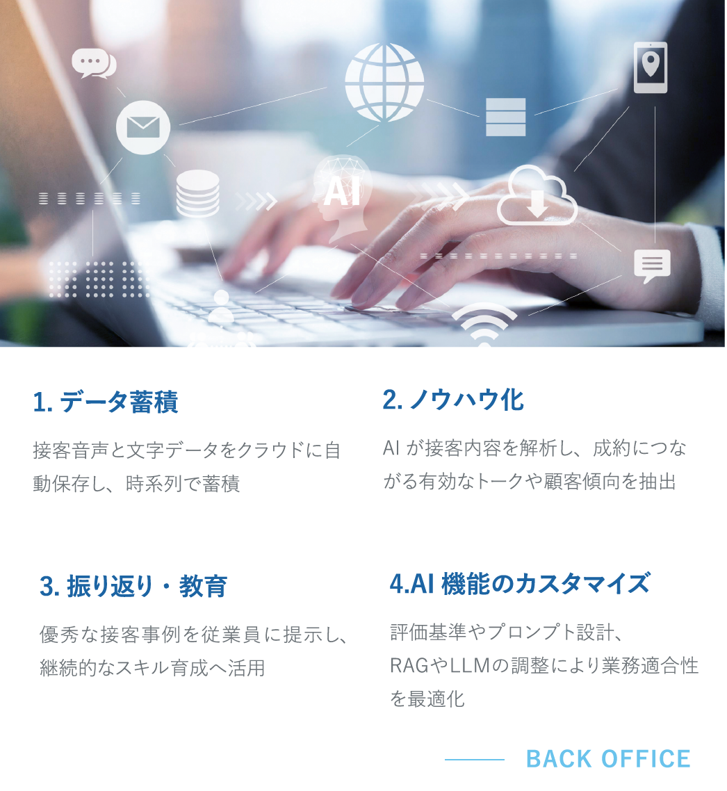 の3要素で構成されており、接客品質の向上と現場業務のDX化を実現します。